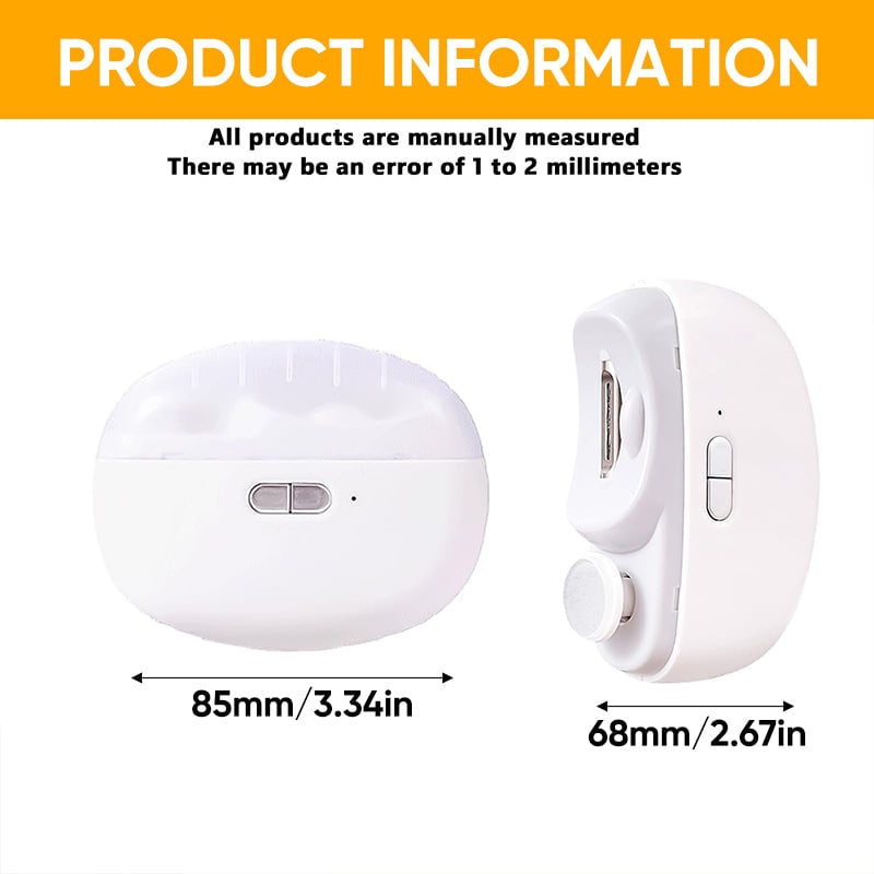 Light-Assisted Nail Care: Enhancing visibility during nail trimming and grinding, the built-in LED light provides clear illumination, even in dimly lit environments. This allows for precise and detailed nail care without the need for additional lighting. Additionally, the clippers operate quietly, with the motor producing a noise level of approximately 40 decibels, ensuring a peaceful environment for baby nail trimming sessions.